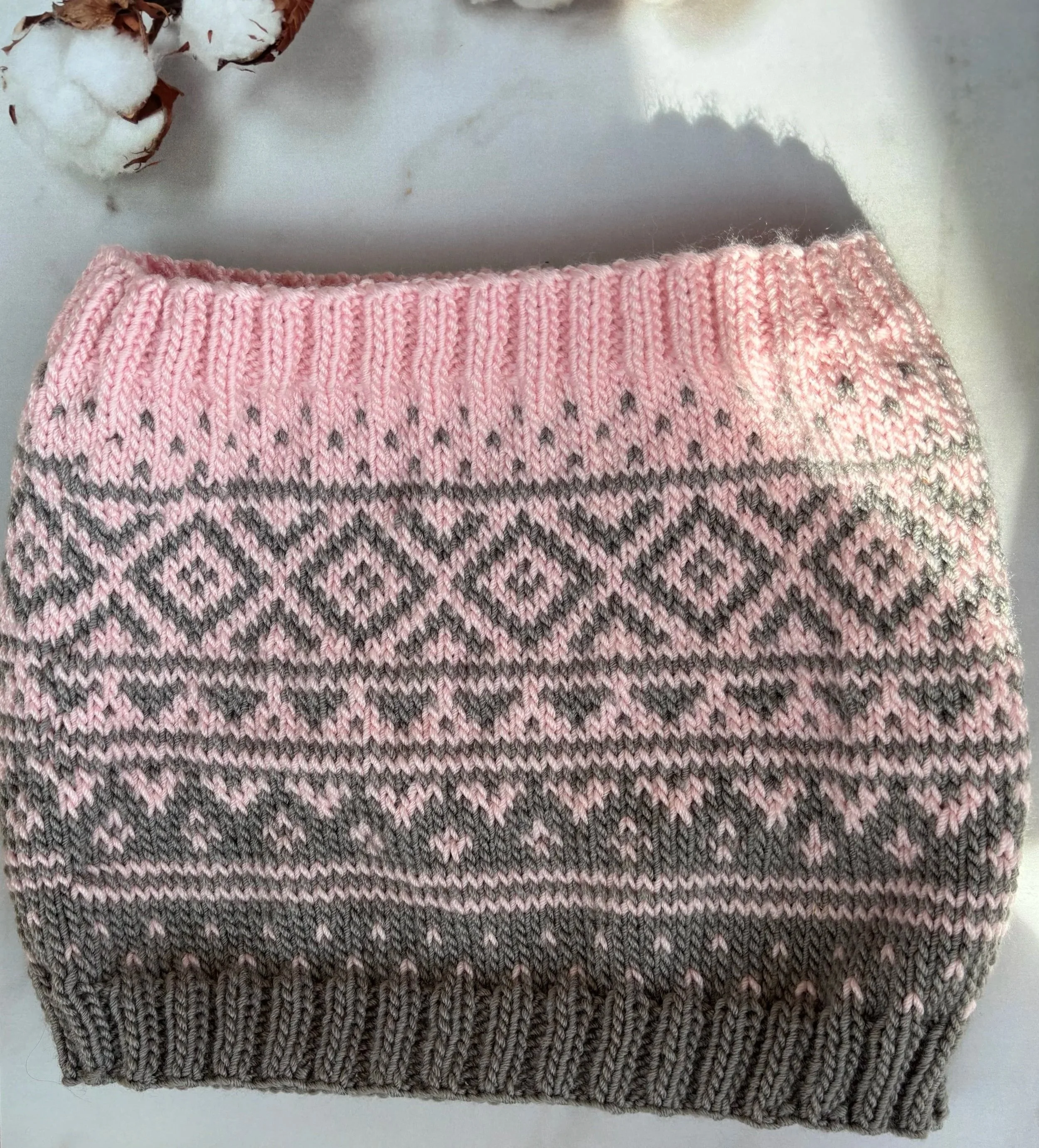 Fade to Grey Cowl. Pattern by Clare and Debbie for Kraft Work Yarns.