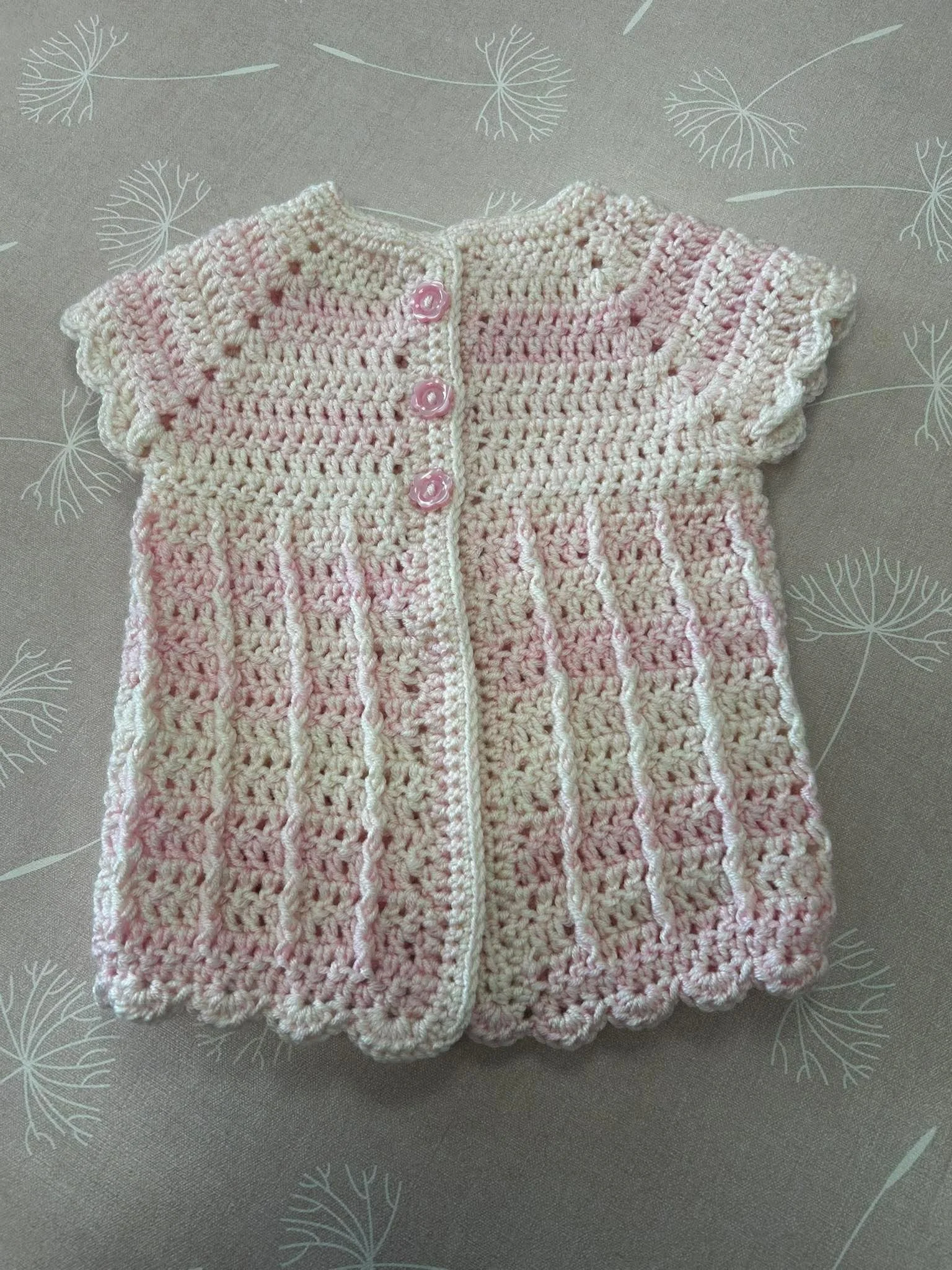 One of Karen’s beautiful baby garments; a short sleeved matinee coat.